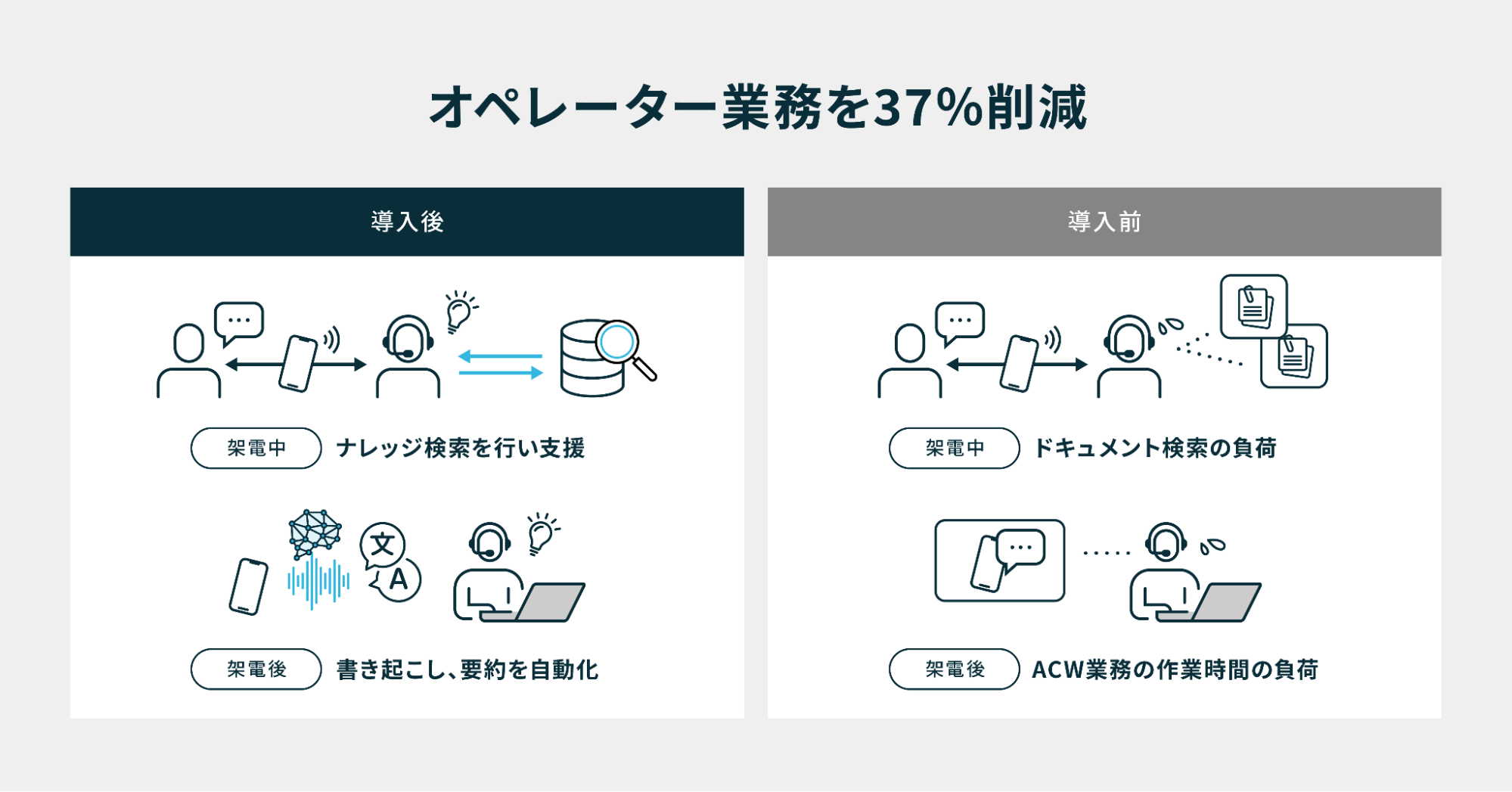 - 導入概要:ACWの効率化で工数を37%削減、応答率の向上を実現