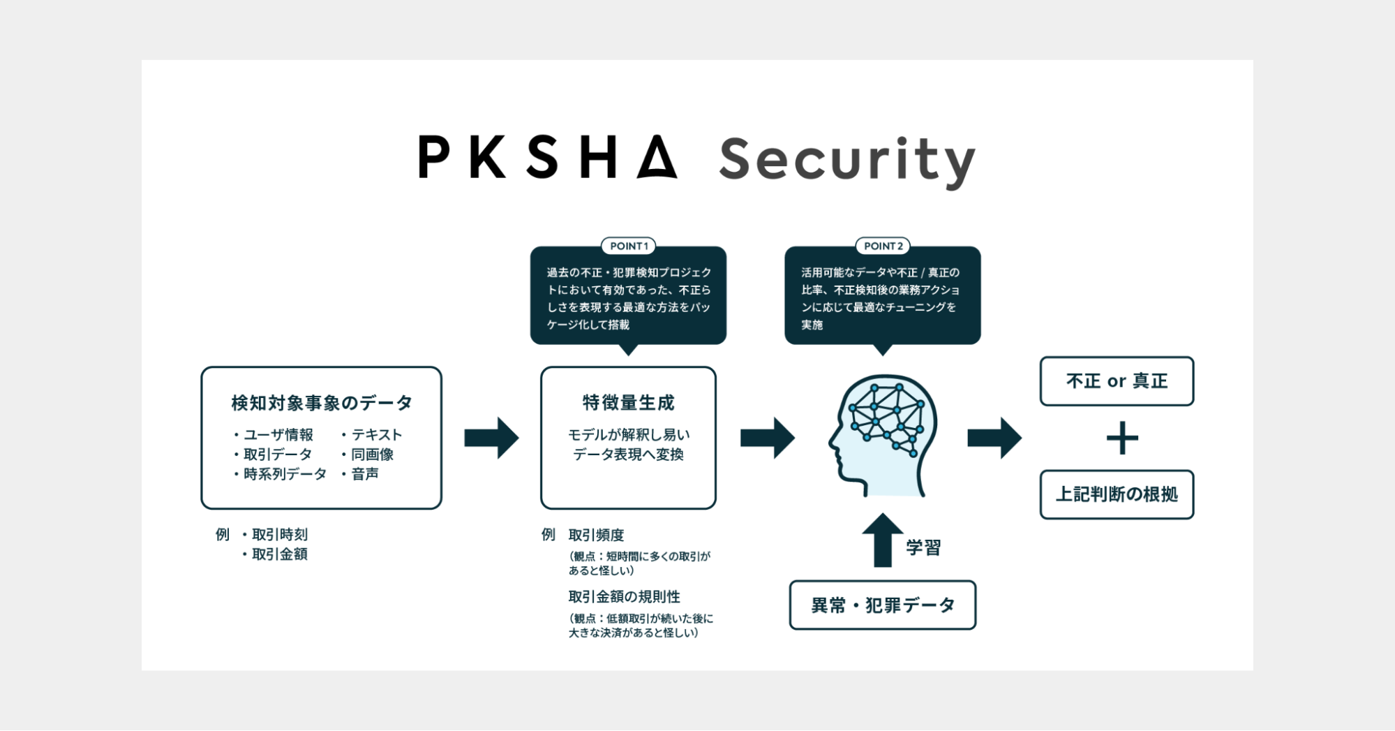 株式会社PKSHA Technology(読み:パークシャ テクノロジー、本社:東京都文京区、代表取締役:上野山 勝也、以下PKSHA)は、株式会社エポスカード(本社:東京都中野区、取締役社長:斎藤 義則、以下エポスカード)と、クレジットカード不正使用被害の抑止を目的に「PKSHA Security(パークシャ セキュリティ)」の運用を11月から開始しました。PKSHAは「人とソフトウエアの共進化」というビジョンの元、ソフトウエアを軸にしたソリューション・プロダクトの展開を行っています。「PKSHA Security」の展開を通じ、世の中の急激な情勢変化やテクノロジーの進歩に伴う新たな不正・犯罪の増加という社会問題を解決し、安心安全な未来の実現を目指します。