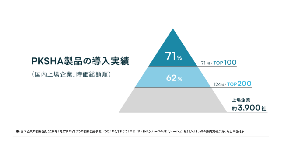 ※2:2024年9月までの1年間にPKSHAグループのAIソリューションおよびAI SaaSの販売実績があった企業数
