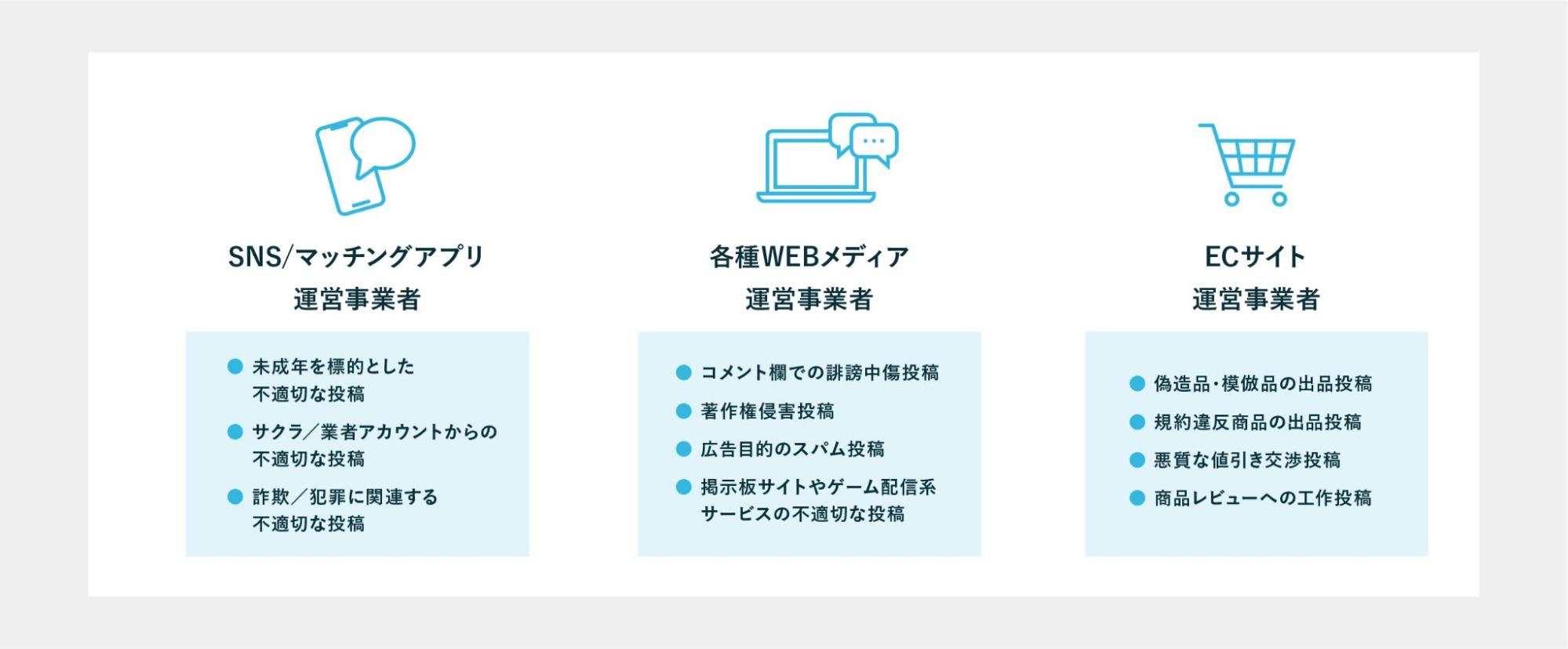 近年、インターネット上の各種プラットフォームサービスにおいては、誹謗中傷や未成年を標的とした不適切な勧誘、意図的な虚偽情報の拡散など、インターネット上の有害コンテンツが深刻な社会問題として顕在化しています。