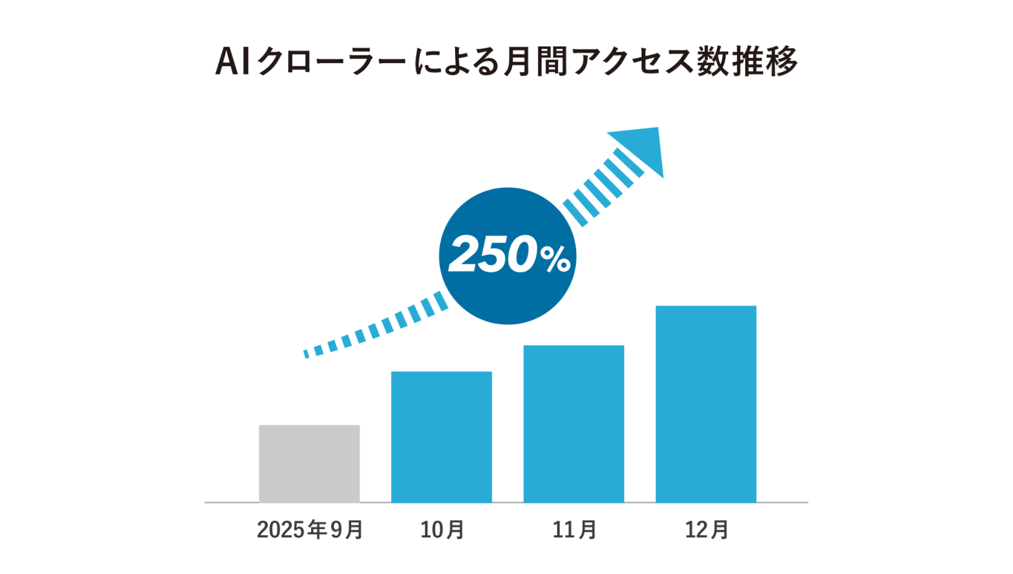 AI検索の普及により、企業FAQへのアクセスは急増しています。「PKSHA FAQ」導入企業約500社のAIによる参照数は、9月から急増し、12月には9月の2.5倍にあたる1億5000万件を超え、なおも右肩上がりで増え続けています。